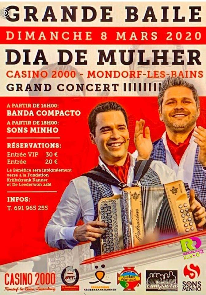Os portugueses Sons do Minho e a Banda Compacto actuam este domingo (08 de Fevereiro) à tarde no Casino 2000, em Mondorf, no Luxemburgo.