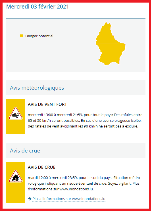 Previsão meteorologia 03.02.2021, no Luxemburgo - FONTE METEOLUX