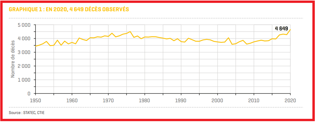Segundo dados do instituto nacional de estatísticas luxemburguês, do total (4.649) 501 pessoas morreram devido à Covid-19, ou seja, 10,8% das mortes registadas em 2020.