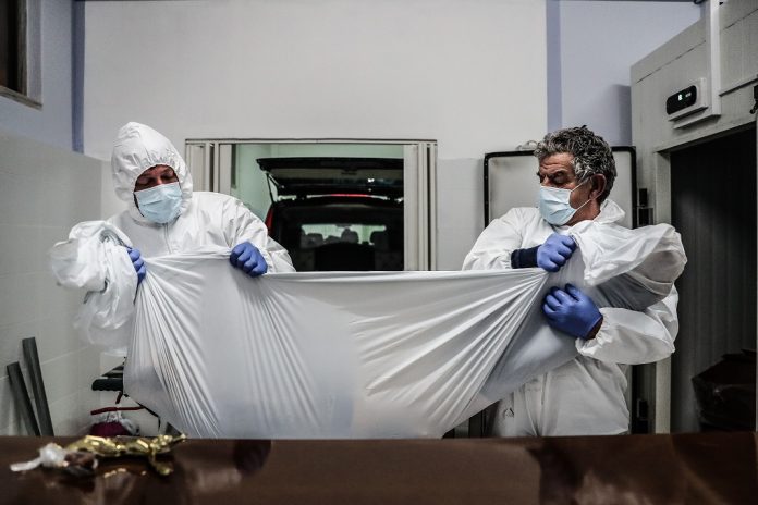 Início Portugal Covid-19: Portugal com mais 275 mortes e quase 6 mil novos casos Portugal Covid-19: Portugal com mais 275 mortes e quase 6 mil novos casos Por LUX24 - 1 Fevereiro 2021 Share Facebook Twitter Pinterest WhatsApp Funcionários de uma agência funerária seguram o corpo de uma mulher vítima de covid-19, na Amadora, 30 de janeiro de 2021. FOTO: MÁRIO CRUZ/LUSA EM ACTUALIZAÇÃOPublicidadeFalhas, erros, imprecisões, sugestões?Por favor . Publicidade ARTIGOS RELACIONADOSMais do autor Covid-19: Mundo regista 2,22 milhões de mortes desde o início da pandemia Covid-19: O distanciamento da morte no frio do último adeus Covid-19: Alemanha decide apoio a Portugal “no início da semana” Publicidade Publicidade Publicidade Publicidade