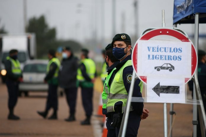 Agentes da GNR durante uma operação de controlo na entrada em Portugal pela fronteira do Caia (Elvas). As fronteiras foram repostas desde as 00:00 de domingo, dia 31 de Janeiro, no âmbito das medidas para conter a propagação da covid-19 no território português. Elvas, 31 de janeiro de 2021. NUNO VEIGA/LUSA